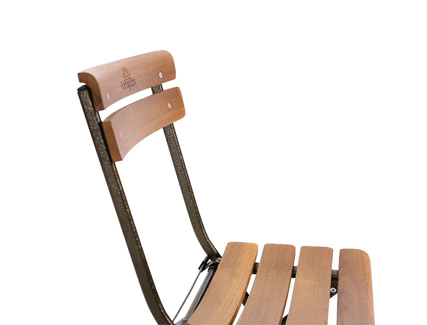 Mặt ngồi và tựa lưng là từ gỗ Acacia, được làm kỹ và tỉ mỉ , có bo cong tạo cảm giác dễ chịu khi ngồi và tựa lưng